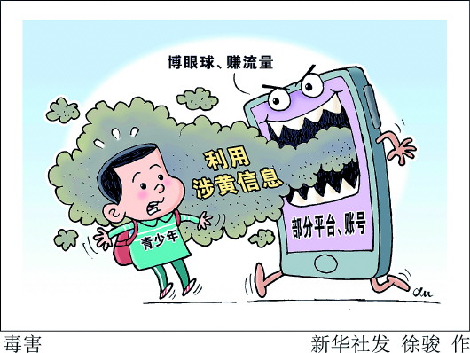 中国人民大学法学院教授刘俊海建议,应对通过网络传播涉黄等不良信息或进行相关交易的行为实现常态化、规范化、法治化的打击。