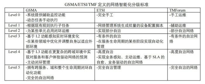 目前,通信国际标准组织已经开始对通信人工智能的发展成熟度进行初步的分级: