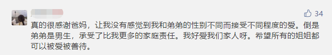 评论中,那些成长在“重男轻女”家庭的姐姐,诉说了不被看见的委屈和牺牲。