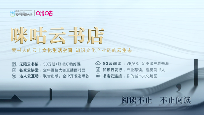 在此次中国数字阅读大会上,咪咕数媒发布了咪咕云书店业务运营模式。未来将携手国内300余家图书出版单位及文化行业合作伙伴打造线上线下知识文化生活云平台,为用户带来纸书、电子书、知识付费、文创等一站式文化内容体验,开启书店3.0时代。