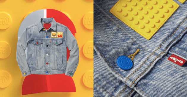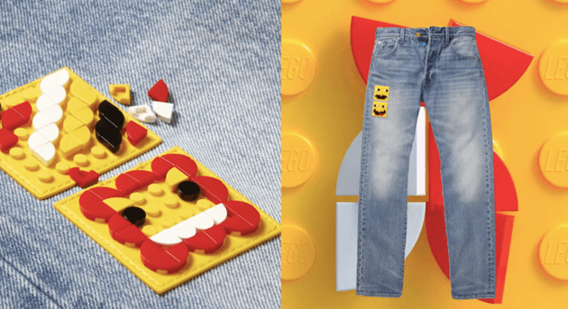 去年 9 月,乐高看上了 Levi’s,和它们联名推出了系列服饰和配件。通过一块黄色的可弯折柔性硅胶底板,乐高积木就能巧妙地被组装上去。