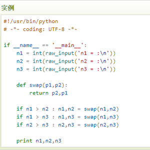 程序分析:首先分为以下重要步骤:1,接收输入数据,2逻辑判断排序,3输出结果。1接收输入数据,如果正常工作场景肯定要对接收数据做判断(是否为有效输入,不是的话做出返回),但在这里就直接用int(input())做接收了。