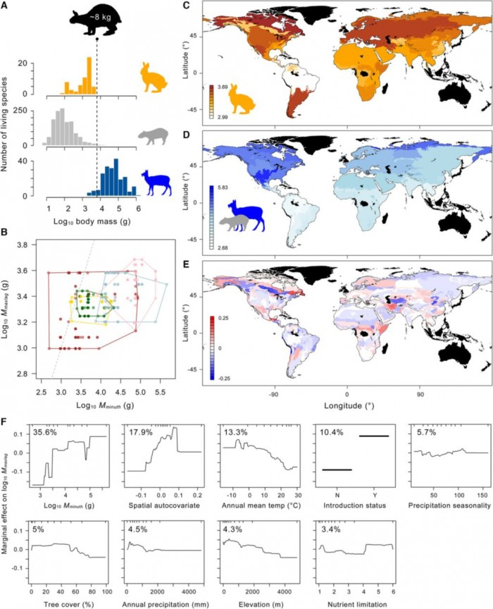 团队负责人 Susumu Tomiya 表示:“最大的活体野兔平均只有约 5 公斤(11磅)重,是最大的活体啮齿动物水豚的十分之一。但是一些品种的家兔和其他灭绝物种的体重可以达到 8 公斤(18磅)。我们对此感到惊讶,因此开始调查是什么样的外部力量使世界各地的野兔无法进化出更大的身体尺寸”。
