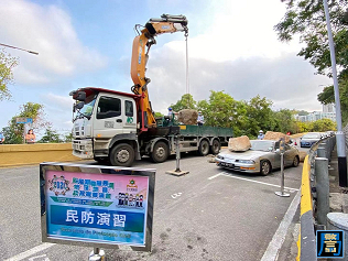 此外,演习还设置了多项模拟突发事故情景,包括:台风期间危险品货运车交通事故、低洼地区居民拒绝撤离、狭窄街道拯救、船只火警、西湾大桥下层隧道交通事故、紧急供水调度、摇摇欲坠之窗户处理、移除倒塌的建筑棚架、清除路障及疏通干道等,从各项实际操作中检视民防架构成员的应急预案及执行能力。