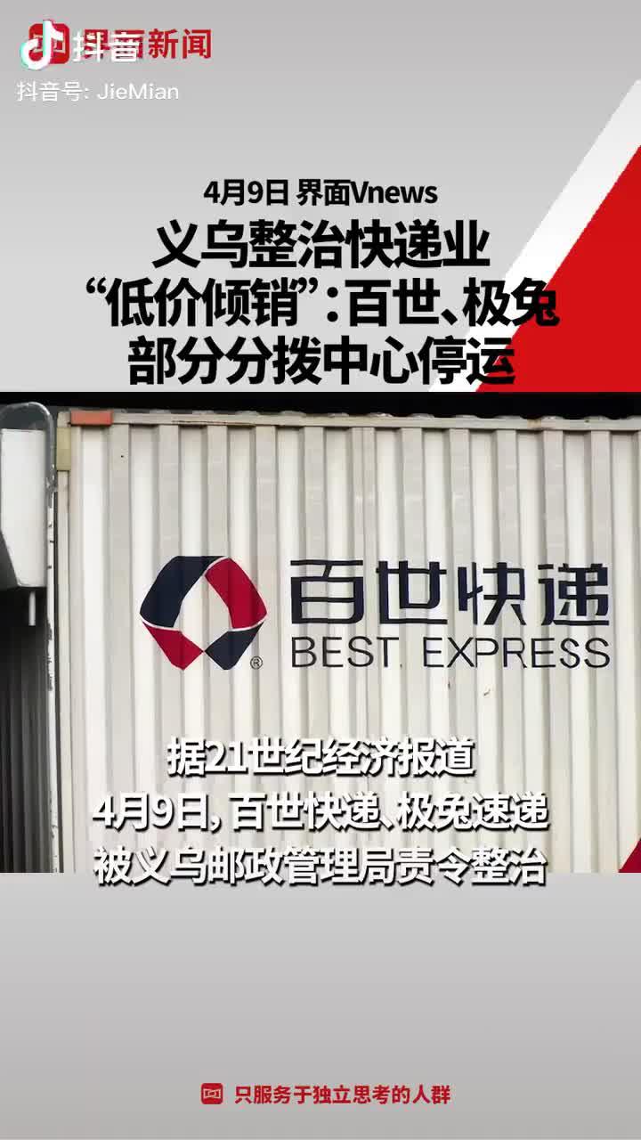 义乌整治快递业“低价倾销”:百世、极兔部分分拨中心停运