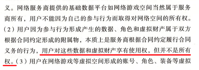 用户对这些数据和虚拟财产享有使用权,但并不是所有权 ▼