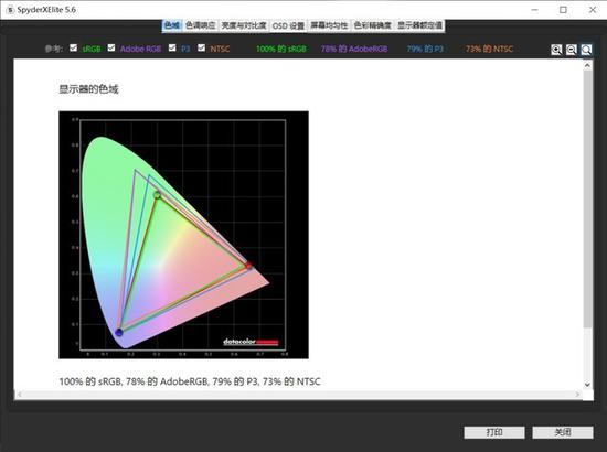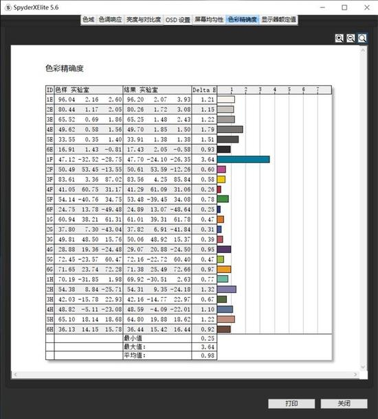 测试数据显示这块屏幕的素质可能更高。色域覆盖100% sRGB、78% AdobeRGB、79% P3、73% NTSC,最高亮度584.7cd/m2,色准平均ΔE=0.98。峰值亮度超过官方数据挺多的,最夸张的还是官方没有提到的色准,平均色准<1的水平非常夸张,即使具体到子项,偏离最大的色样也只有3.64,其他色样基本都没有超过2。这样的色准成绩相当给力,完全可以用于修图等创作工作。
