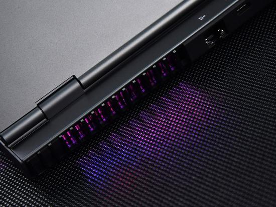 而且有一点贴心设计非常好,那就是单按下Fn后,支持第二功能的按键会有背光,其他按键则没有,方便使用。虽然这一设计在外接键盘中比较常见,但在笔记本中极为少见。这种细节设计还体现在电源键上,电源键中央有圆点设计,可以发出不同颜色的光。在均衡模式下为白光,野兽模式下为红光,安静模式下为蓝光,相当实用。