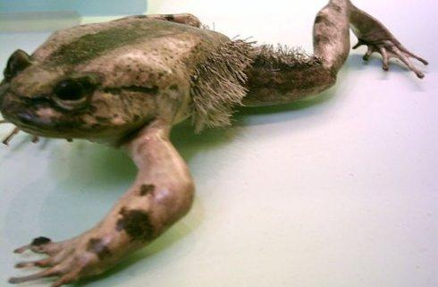 雄性多发蛙非常丑陋,在交配季节会长出毛发般的皮肤和动脉,它的超级能力令人不安,又令人感到敬畏,当多发蛙受到威胁时,就会像科幻电影《X战警》中的金刚狼,从脚趾尖刺出爪子,它的爪子不是由角蛋白构成的,而是由骨骼构成的,更令人不安的是,这种青蛙似乎必须折断脚趾的骨头才能把爪子伸出来。