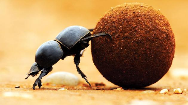屎壳郎虽然体形较小,却拥有无与伦比的肌肉,因为它是世界上最强壮的动物之一,它能拉动相当于自身体重1140倍的物体,人们会认为屎壳郎是“动作明星”,但事实上它们的性欲贪得无厌,或者仅是繁殖的生理需要,才使它们保持着如此强壮的身体,雌性屎壳郎会在粪便下方挖掘一个舒适的交配场所,如果不止一只雄性掉入爱巢,雄性之间就开始力量的角逐,它们会用强有力的角推对方,或者使用其他方式将较弱的竞争者赶出去。