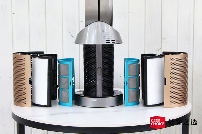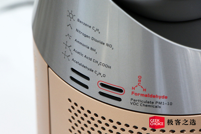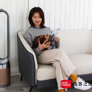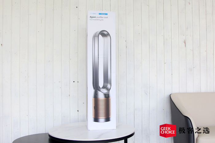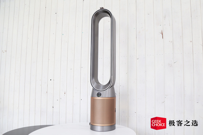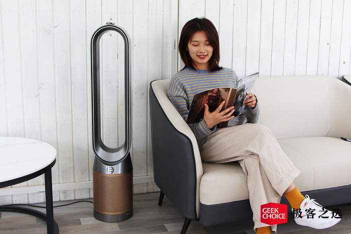极客之选体验到的是黑金色的 TP09,它的外观依旧很「戴森」,延续了标志性的无扇叶设计,无论放在哪里都是提升整屋格调的存在。
