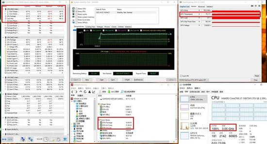 在CPU+GPU双烤机测试中,其处理器核心温度平均为84℃,TDP稳定在55W附近,核心频率稳定在3.05GHz,GPU平均温度只有76.2℃,这样的散热表现颠覆了我们对雷蛇灵刃系列散热的惯有认知,表现相当出色!