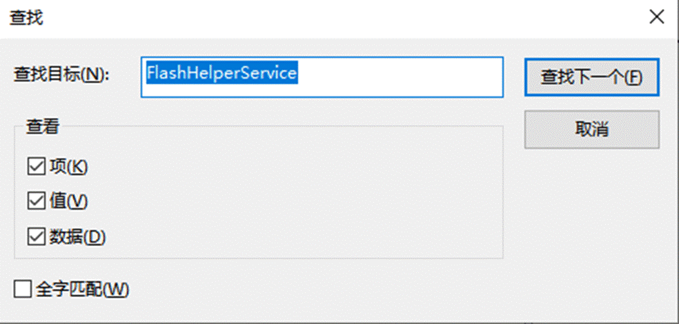 第三步,删除查找结果中阻止的Flash Helper Service服务程序,即删除红圈中的内容。