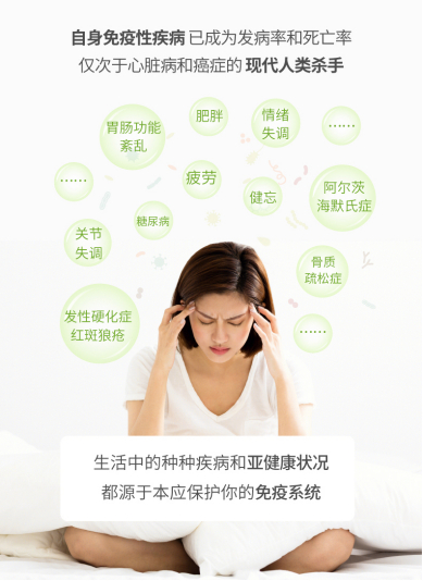 持续的慢性炎症可直接引起组织损伤,并最终导致器官功能障碍。过度的炎症级联反应是导致体重增加、疲劳、抑郁、慢性疼痛、焦虑、失眠和自身免疫性疾病的根本原因。几乎每一种退行性疾病都与过度的炎症有关,包括癌症、心脏病、糖尿病、系统性红斑狼疮、多发性硬化、帕金森病和阿尔茨海默病等。科学研究已证实,动脉粥样硬化和癌症的启动和进展都和自身免疫有关。据估计,在美国有1/5的女性患有自身免疫性疾病,在男性中这一比例为1/7。
