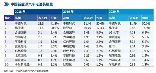 在国内,宁德时代的市场份额更大,根据毕马威中国汽车从中国汽车动力电池产业创新联盟整理的一份数据,从2018年到2020年,宁德时代在国内市场的占有率基本上维持在了一半左右,这可是半壁江山啊。