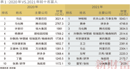 2021新财富500富人榜发布:钟睒睒居首 黄峥身家超过“双马”