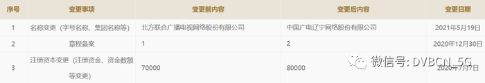 5月19日时,原北方联合广播电视网络股份有限公司的工商注册信息中其企业名称已正式变更为“中国广电辽宁网络股份有限公司”。