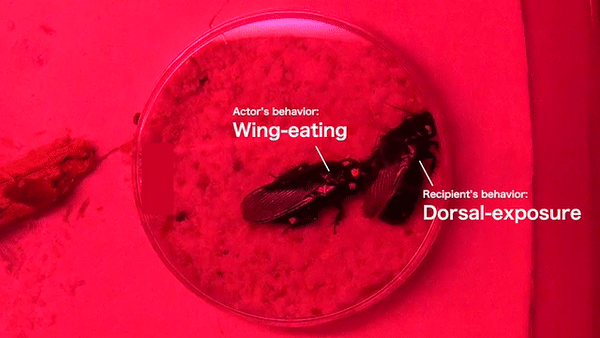 [1] Osaki, H。, & Kasuya, E。 (2021)。 Mutual wing‐eating between female and male within mating pairs in wood‐feeding cockroach。 Ethology, eth.13133。 https://doi.org/10.1111/eth.13133