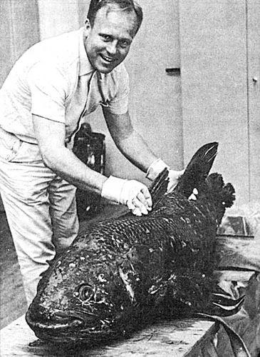 经过与鱼类专家的讨论,拉蒂迈女士得知这很可能是一条腔棘目的古老鱼类,但遗憾的是那条鱼早已被渔民们吃掉。