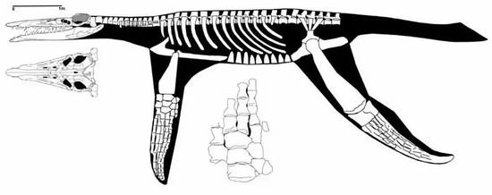 一种短颈蛇颈龙的骨骼结构,注意颈部脊椎骨数量与矢野笔记的对比