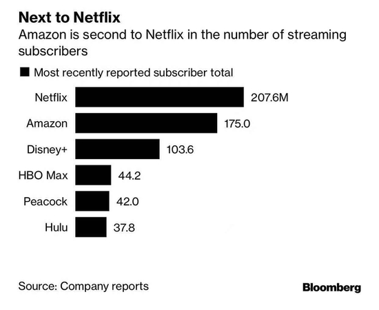 亚马逊在流媒体订阅用户数量上仅次于 Netflix
