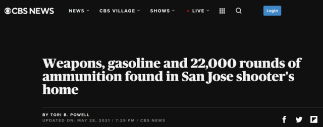 据美国CBS新闻网消息,当地时间5月28日,美国圣克拉拉县警察局称,在加州圣何塞大型枪击案嫌疑人萨姆·卡西迪(Sam Cassidy)家中发现了超过2.2万发子弹、12支枪支、疑似燃烧弹的物体和多罐汽油。当地时间26日,圣何塞发生重大枪击案,包括9名受害者和1名嫌疑人在内共10人死亡。