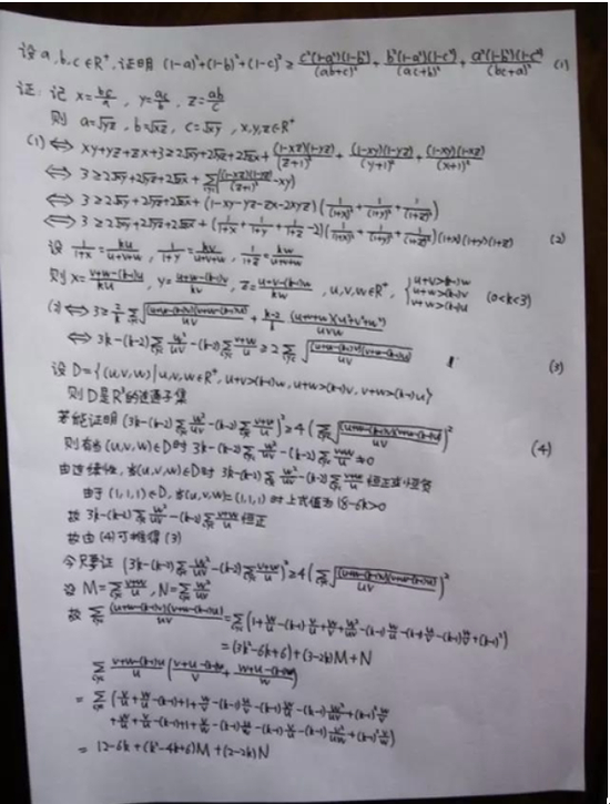 长达四页的解题过程,让国家队副领队花了三个小时,才解出韦东奕的证明。读罢唯有一句“山重水复疑无路,柳暗花明又一村”来形容他奇妙的解题思路。