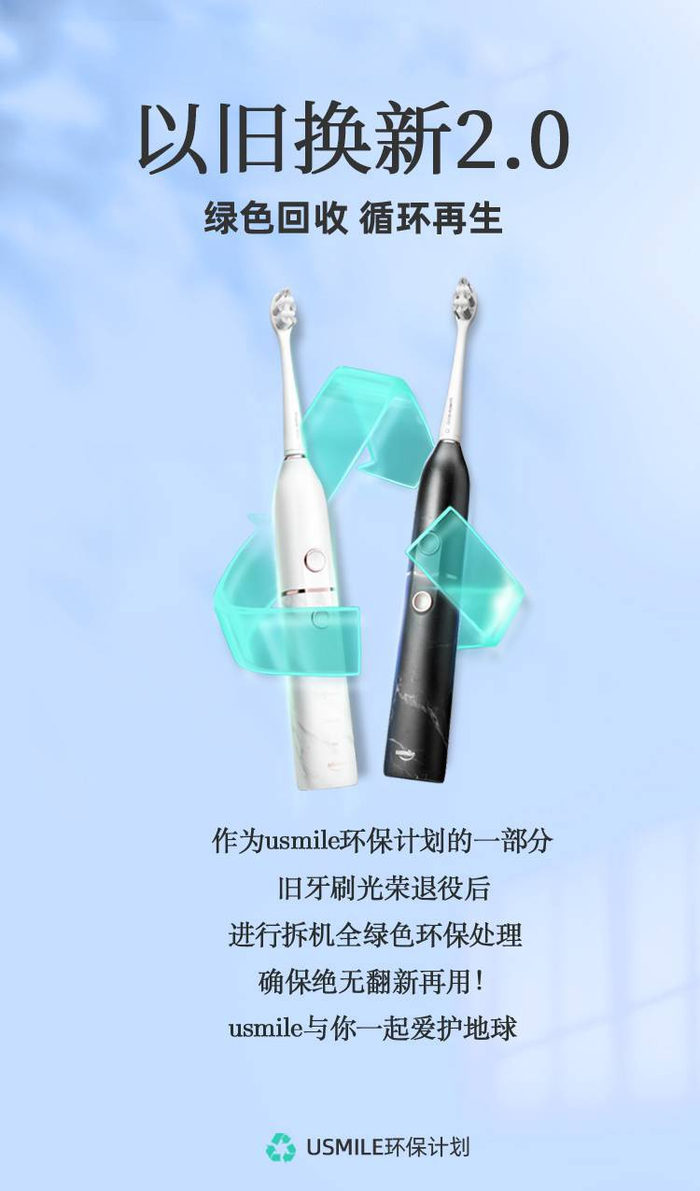 usmile认为一支电动牙刷的使命,不会因时间流逝而结束,通过以旧换新活动,让更新迭代的科技,继续履行守护口腔健康的使命。