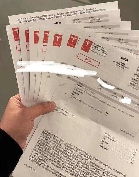第二点就是售后极其不专业。据张先生介绍,在一系列维修之后,特斯拉并不愿意提供维修单,为此他在店里“闹”了足足三个小时。而拿到维修单后,他发现其中漏洞百出,很多故障以及更换的零部件都没被写入维修单。张先生对特斯拉的信任彻底被打破,他也自此养成了“与特斯拉沟通必录音”的习惯。