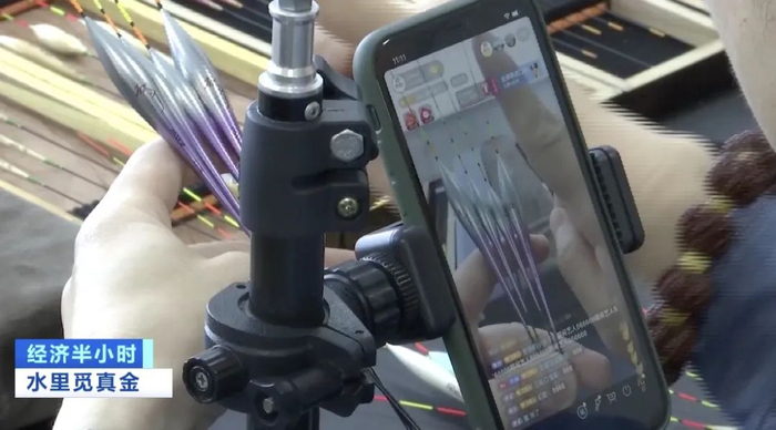 正在进行测试的浮标是临湘一家浮标生产企业最新研发的第三代碳纤维电子浮标。从测试结果来看,这支浮标不仅重量轻,入水后翻转极快,而且使用碳纤维做出来的浮标硬度好,韧性强,还不容易损坏。