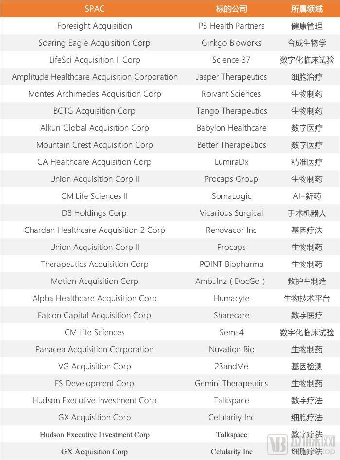 总体而言,即将通过SPAC上市的医疗健康企业多为前沿技术创新应用类,如细胞治疗、基因治疗、AI+新药等,和数字化商业模式创新类,如数字疗法、数字化临床试验等。