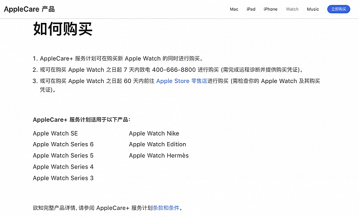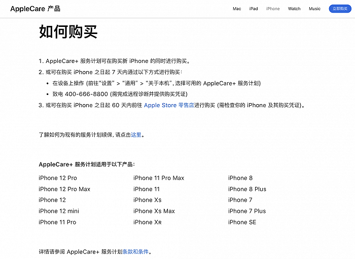 原标题:苹果中国官网调整AppleCare+购买期限,从60天缩短为7天
