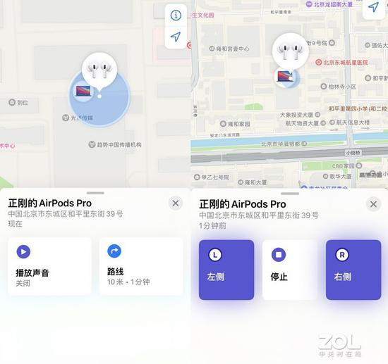 在查找App中,用户不仅可以得知耳机的大致位置信息,同时还可以让耳机发出“滴滴滴”的声音,AirPods Pro的两只耳机还可以分别发出声音,如此一来即便是遗失了单只耳机也能更方便找寻。不过值得注意的是,AirPods Pro发出的声响还是过于微弱,需要在距离耳机很近的地方才能听到。