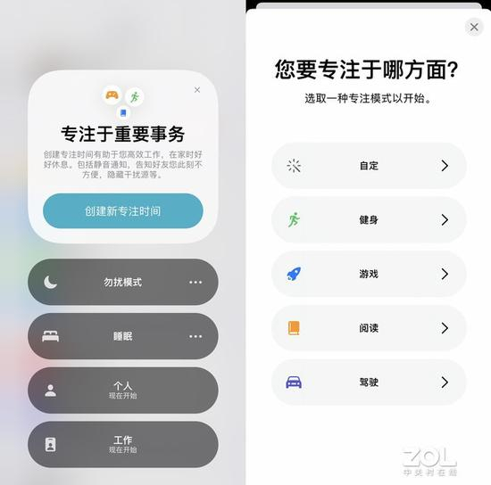 同时从设置页面还可以观察到一项明显的变化,就是原有的“勿扰模式”升级为了“专注”。