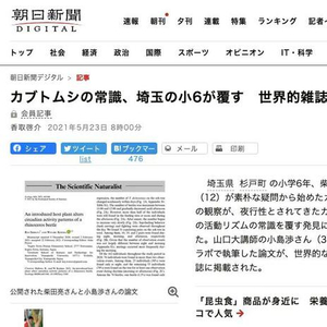 今年5月23日,日本朝日新闻对这一事件的报道,标题为“独角仙的尝试被埼玉县的小学六年级学生颠覆,并在世界级的杂志上发表了论文”。