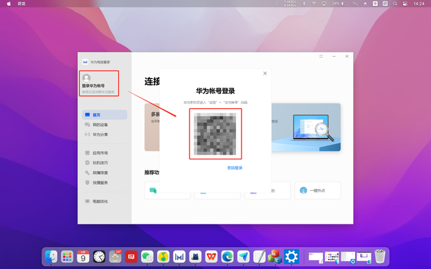 1. 华为设备间的协同需要基于同一账号,首先在电脑管家中登录自己的华为账号