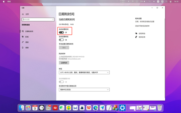 2. 开启「自动设置时间」选项即可