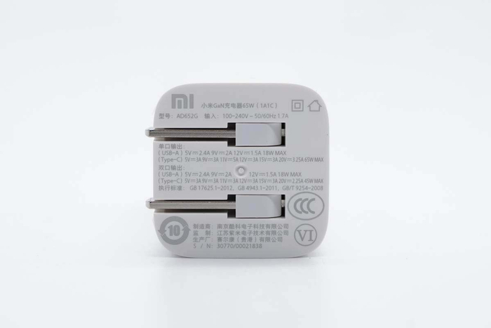拆解报告:MI小米65W 1A1C氮化镓充电器AD652G