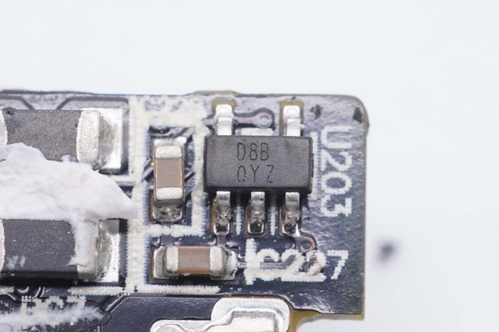 小板上一角是一颗丝印D8B的稳压芯片,为协议芯片供电。