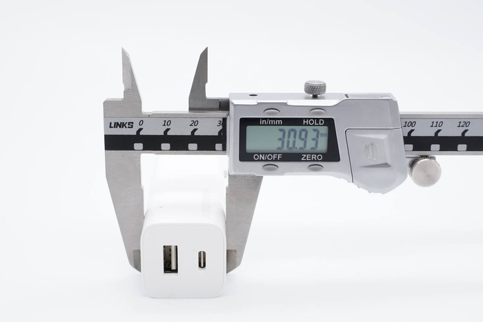 使用游标卡尺实测充电器机身长度为71.78mm。