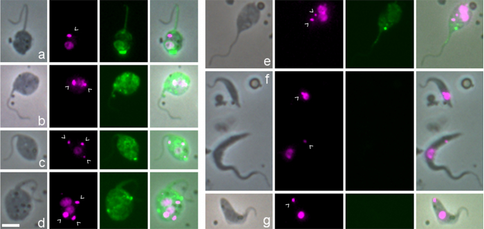 具体说来是,锥虫具有两种独特的细胞内结构,分别是动质体(环状 DNA 网络)和糖体(一种包含糖酵解酶的膜封闭细胞器)。
