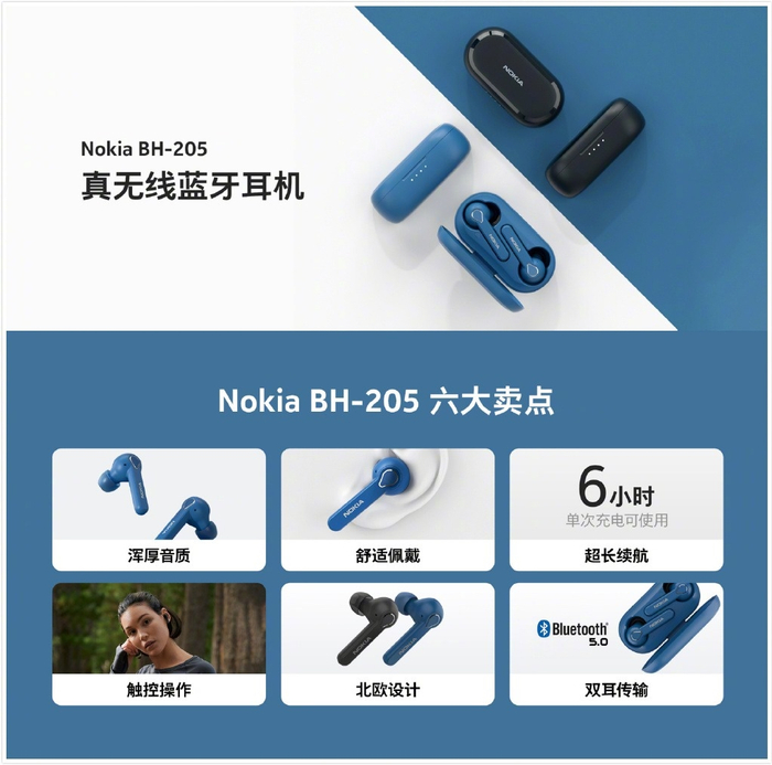 Nokia BH-205真无线蓝牙耳机发布:续航达36小时