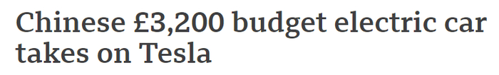 BBC 的这个标题也很有意思,说 “ 五菱要挑战 ( takes on ) 特斯拉 ” ……