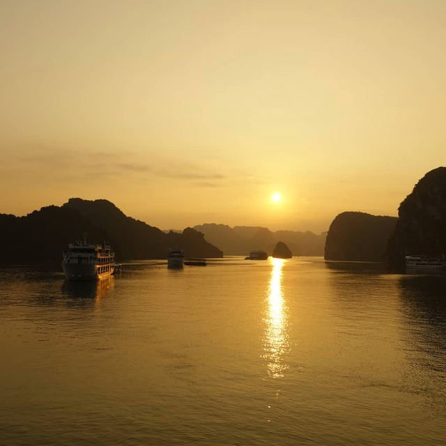 下龙湾是越南北部的海湾,虽是海湾,却酷似桂林山水,景色秀丽奇美,被称为“海上桂林”。在下龙湾,你会发现每一个岛都有不同的形状,像一座座天然的楼台,又像是巧夺天工的雕塑,嶙峋的山石和幽暗的洞穴里,仿佛暗藏着远古时期的神话。日出时,阳光穿越山洞映射到海面,浅绿色的海水波光粼粼,像绿宝石镀上了金边,几艘远处的游船悠闲地缓缓驶来,点缀了海平面的远方,薄雾在山间弥散。置身其中,不禁想吟诗一首,赞颂这宛如小说中的人间幻境。