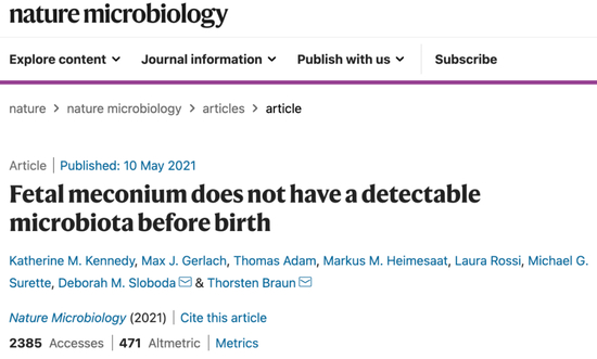 关于新生儿肠道里有没有细菌的问题,我们终于有确切的答案了。