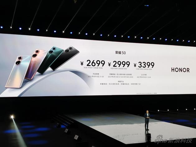 价格方面,荣耀50共有8+128/8+256/12+256三种规格可选,分别售价2699元、2999元、3399元,荣耀50 Pro有8+256/12+256两种规格可选,售价分别为3699元和3999元。