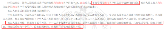 2019年11月份,逯某开始用自己开发的爬虫软件“淘评评”,通过淘宝商品详细信息接口和淘宝信息分享接口,爬取淘宝客户的淘宝数字ID和淘宝昵称,并通过淘宝分享接口可以爬取淘宝客户手机号信息。