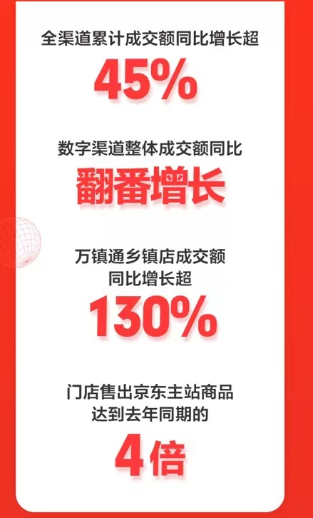京东五星电器、京东电器城市旗舰店各大门店全渠道销售模式下,不仅实体店销售火爆,员工在非营业时间同样可以通过虚拟场服务顾客。618期间京东五星电器旗下各大门店售出的京东主站商品是去年同期的4倍,从带电产品到纸品清洁、米油粮面、美妆应有尽有。尤其是6月18日当天凌晨,京东万家系统仅5分钟成交额就突破1000万。京东五星电器在京东主站上的两大旗舰店销量也不断攀升。整体数字渠道成交额实现翻番增长。