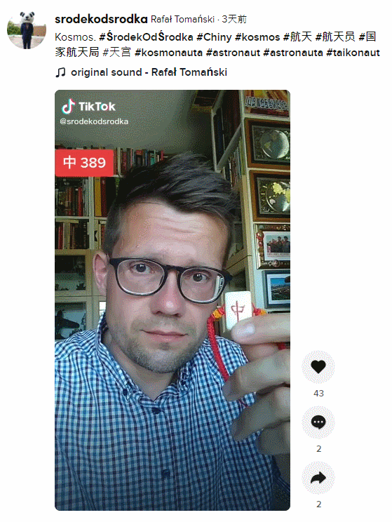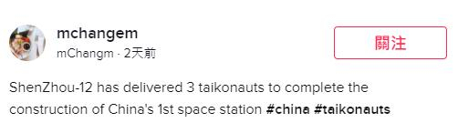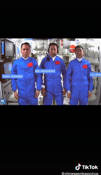 2021年,航天员聂海胜、刘伯明、汤洪波奉命出征,并成功进入中国人自己的空间站,TikTok立即“同步直播”了相关盛况。