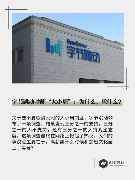 或许这也能在一定程度上解答,为什么关于要不要取消大小周,字节跳动的管理层还要专门做一项调查。